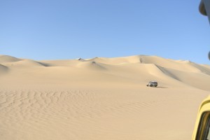 They call them “ice cream dunes” as they look like whipped ice cream, dunes piled on top of dunes. They are almost impossible to drive over and a route for the five cars is carefully picked out by the lead car.